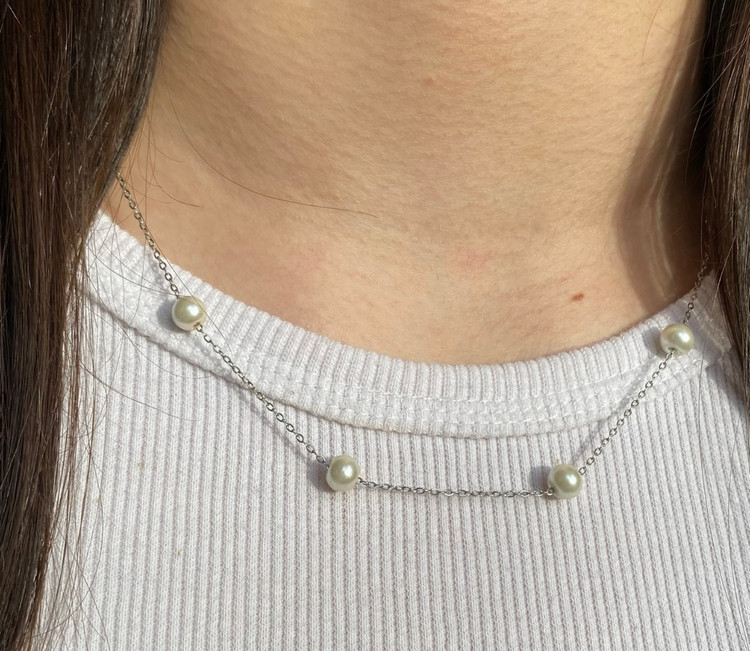 ست زنانه گردنبند و دستبند مدل مروارید رنگ ثابت نقره ای