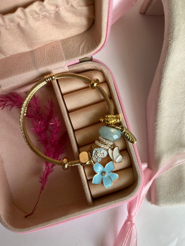 بنگل زنانه رنگ ثابت طلایی طرح شکوفه آبی۲۴۳٬۰۰۰ 6%